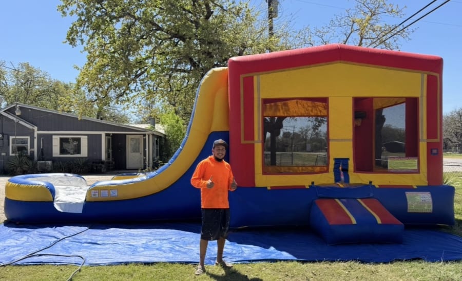 The Jump N Slide Combo is a versatile bounce house with a built-in slide and an inflated landing pad. This wet or dry combo offers safe, high-energy play for boys and girls. At 34 foot long, 13 foot wide, and 13 foot tall, it fits backyards and event spaces. The landing pad is 2–3 inches deep for soft, splash-free landings. 🛝👦👧