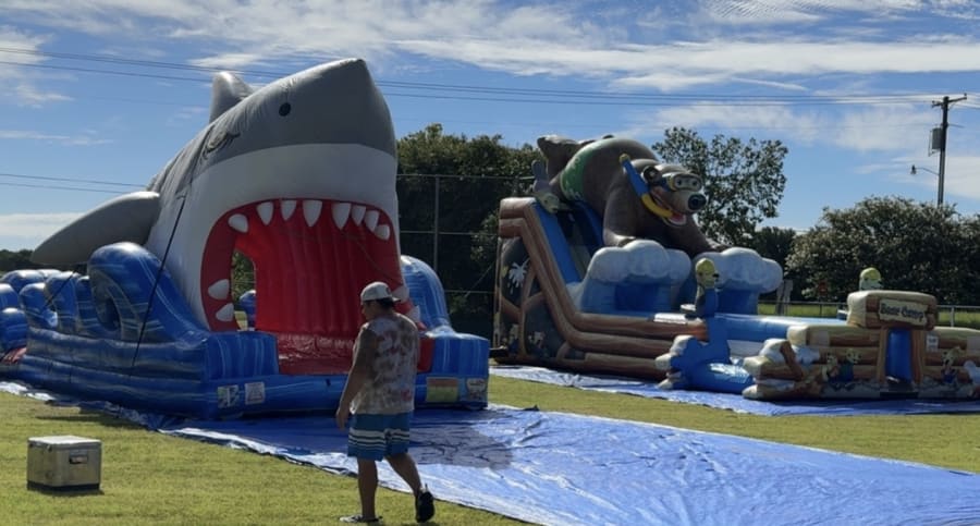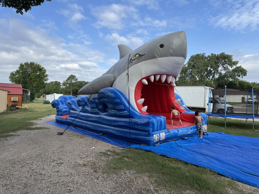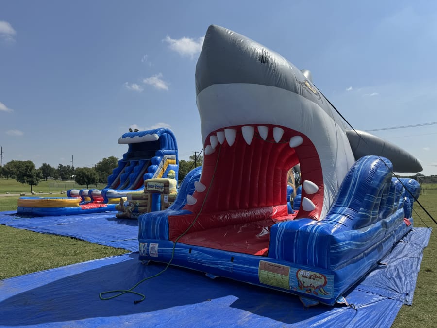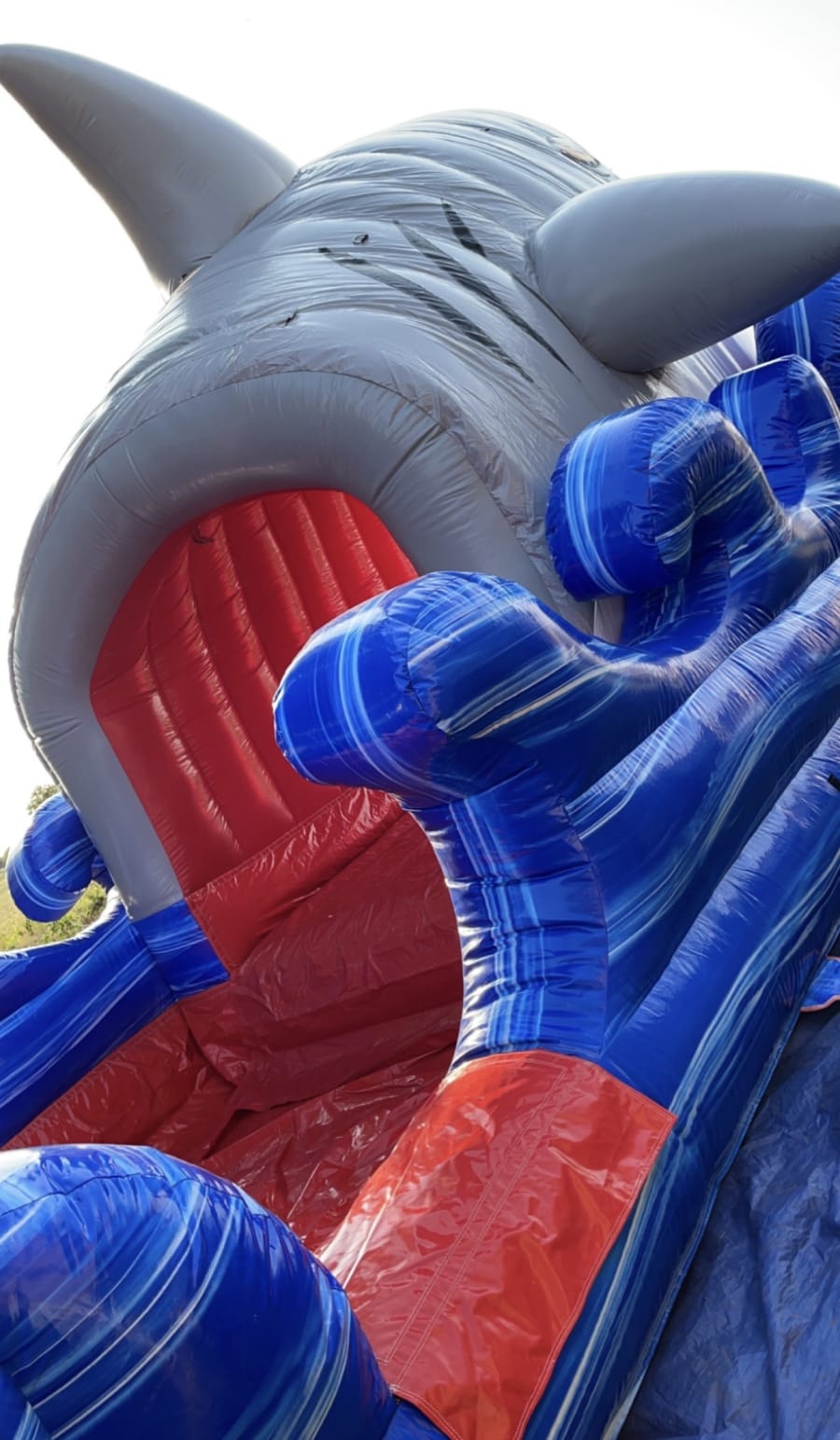 Sharkeisha is a show-stopping unique slip n slide inflatable built for big splashes! Slide through the shark’s giant jaws and land in a roomy splash pool. It doubles as a slide, pool, and bounce area. Perfect for parties, events, and hot summer days. 🦈💦