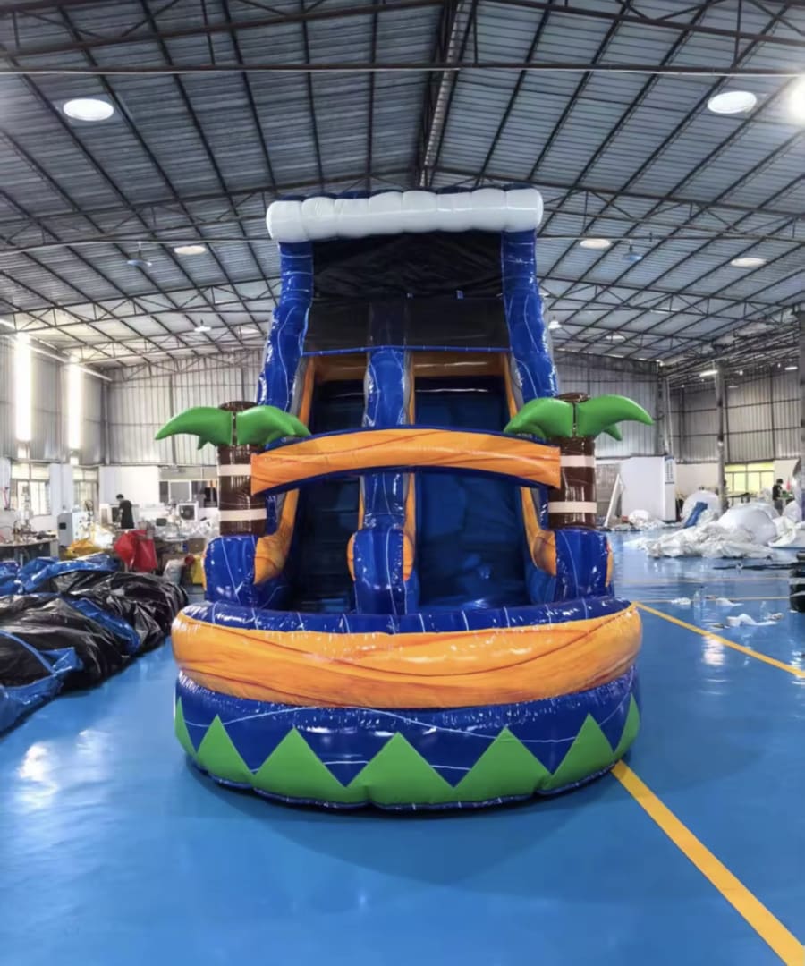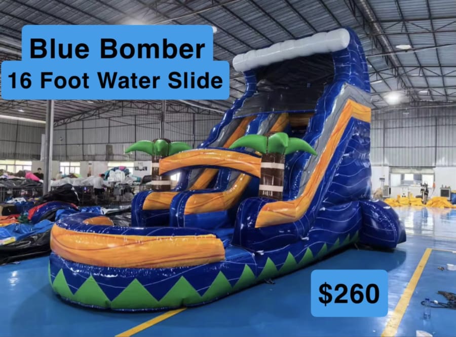 The Blue Bomber is a 16-foot single lane waterslide designed for backyard parties, community events, and summer play. Bright blue and yellow colors make it eye-catching. It’s ideal for boys, girls, teenagers, and young kids who love splash-and-slide action.